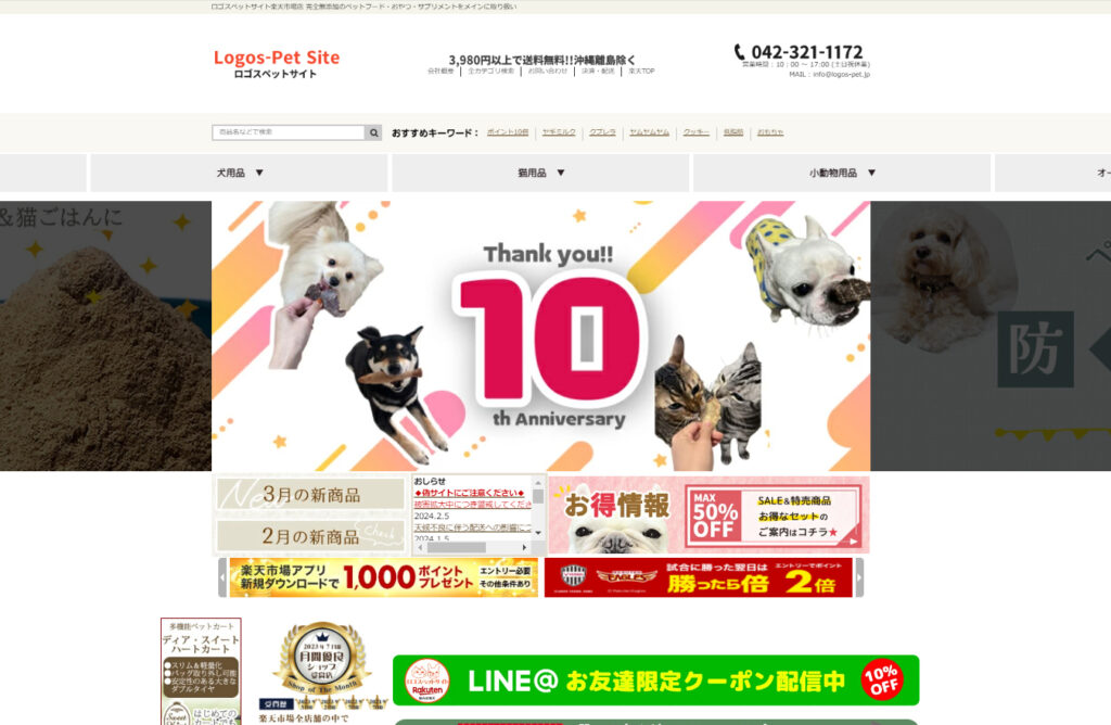 ペット用品ECサイト logos pet様の商品ページ、PB商品ページ、商品画像、バナー、特集ページ、チラシ、の一部を制作させていただきました。